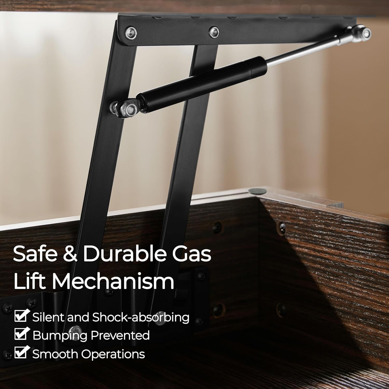 - Practical Lift-top Design: This coffee table is equipped with a spring lift mechanism that helps bring the tabletop to you and creates an 47.5 x 23.5 inches (L×W) spacious working/dining surface while you relaxing on the sofa. The metal mechanism raises the tabletop from 19.5 to 25 inches easily and smoothly