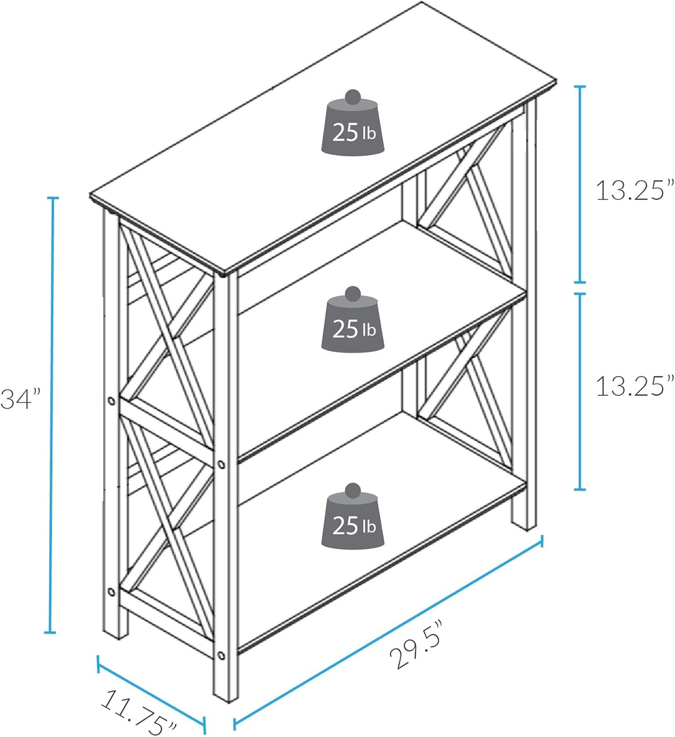 Storage with ease, this Montego X-Design Style Bookcase is constructed with solid wood for lasting use. 3 shelves provide ample storage space. Thorough finish gives this bookcase a strong, contemporary appearance. Perfect for home storage and decor.
