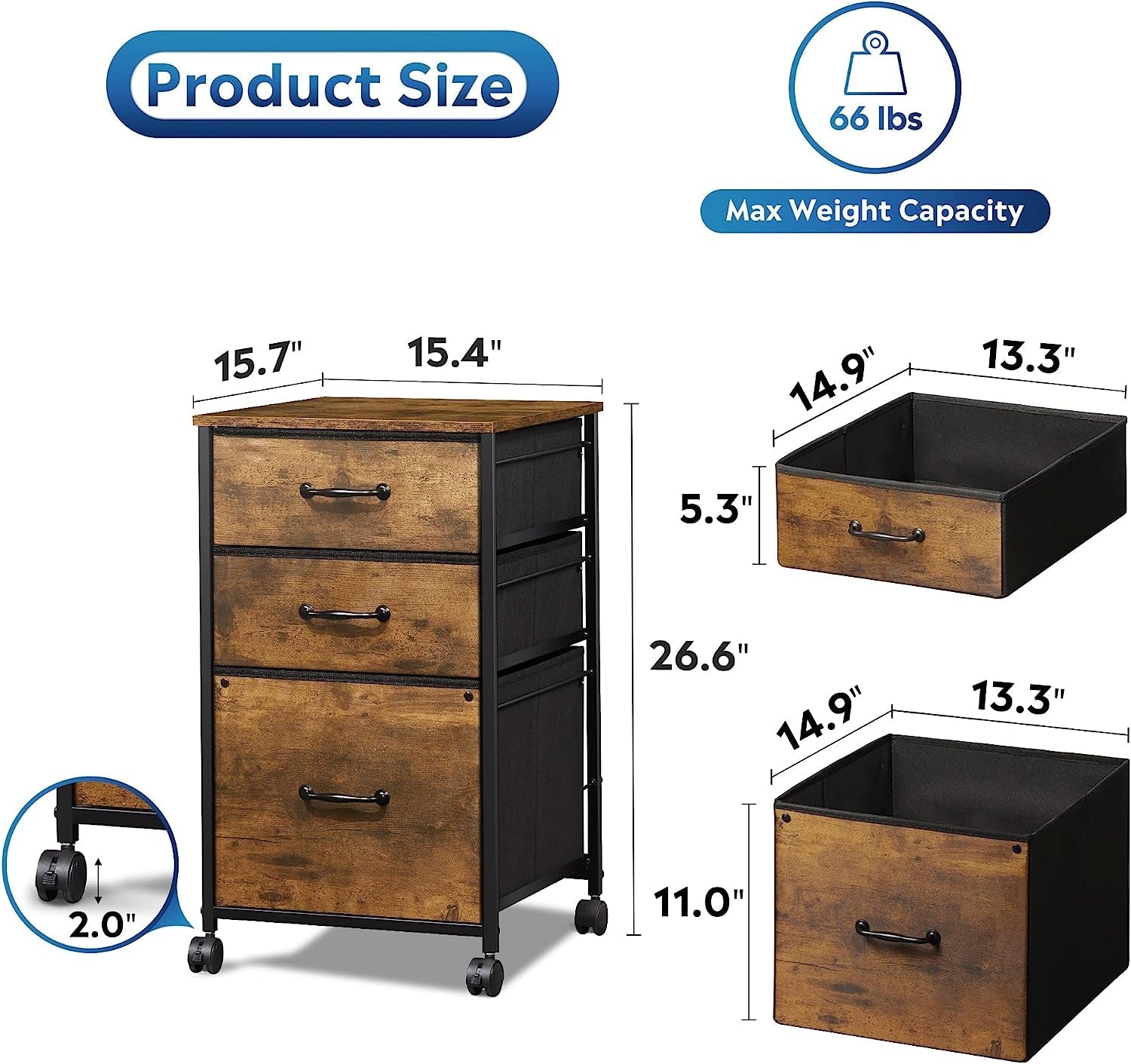 - Easy to Move: Rolling on 4 wheels, this mobile file cabinet can fix or move around your home office freely. Built-in brakes on front 2 casters to keep it in position and add stability. Unique fabric drawer design makes it only weigh 22 lbs. and light to move.